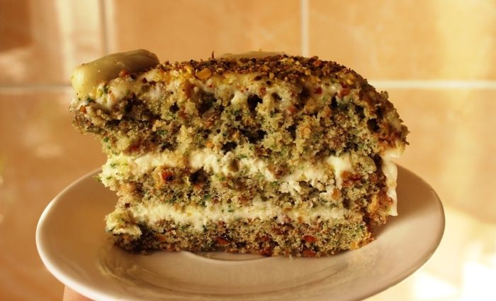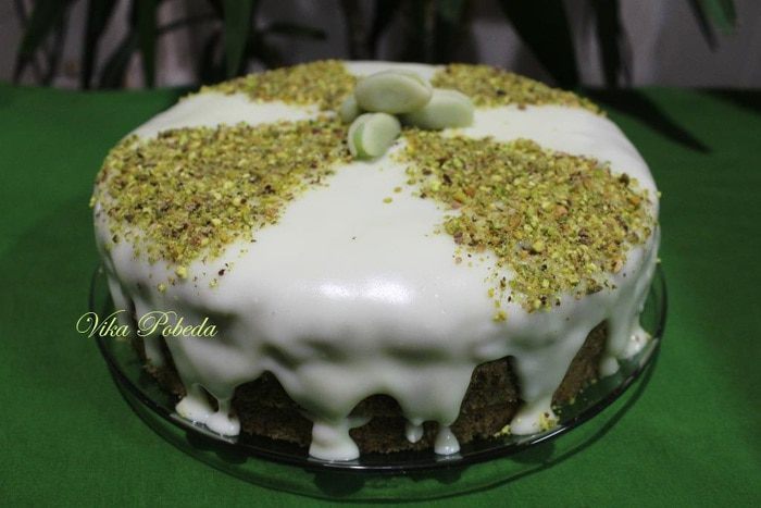 Фисташковый бисквит, пропитанный марципановым кремом под моей любимой глазурью из сливочного сыра, в которую я влюбилась с момента, как приготовила её для томатного пирога http://www.edimdoma.ru/retsepty/67112-pryanyy-tomatnyy-pirog-pod-nezhnoy-glazuryu-iz-slivochnogo-syra.