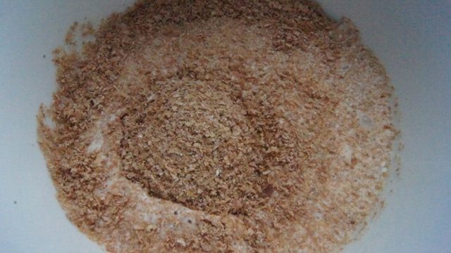 Отруби залить кефиром (я брала варенец), перемешать и оставить на 10 минут.