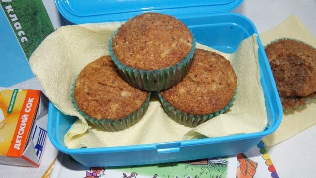Сторонникам и любителям здорового питания эти маффины придутся по вкусу! Вместо сахара — мед, вместо белой муки — цельнозерновая и отруби! Отруби — вещь полезная, так как помогают выводить токсины из организма. При добавлении в выпечку являются источником энергии на весь день. Этот факт радует меня как маму школьников, поэтому эти маффины я даю детям на перекус в школу.