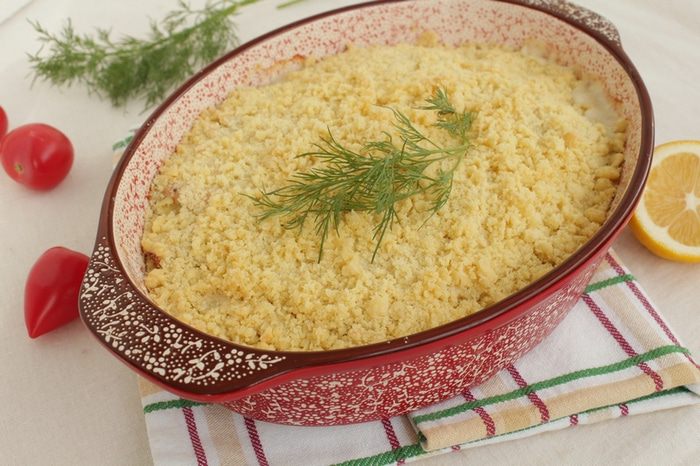 Несладкие крамблы ничуть не уступают по вкусу и оригинальности своим сладким собратьям. Такое блюдо отлично украсит праздничный стол, в будний же день можно приготовить блюдо с более дешевыми сортами рыбы, и оно будет нисколько не хуже. Блюдо заиграет по-новому, если добавить немнго кедрового масла Biolio.