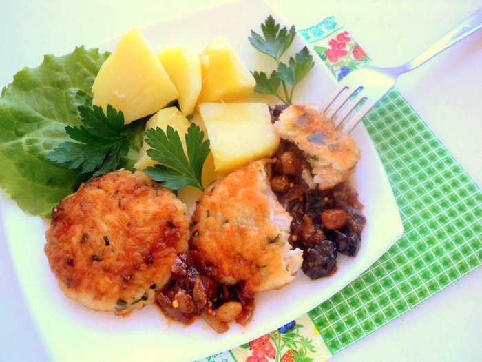 Подавать котлеты с соусом и вареным картофелем. Приятного аппетита!