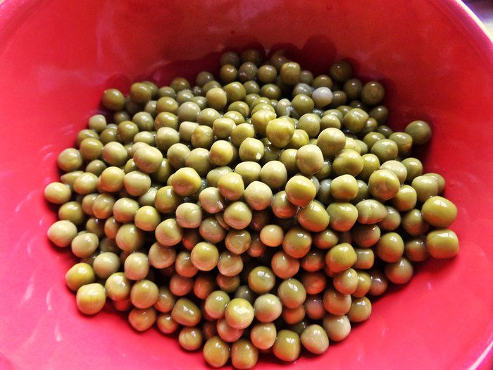 У меня горошек консервированный, слить с него жидкость.