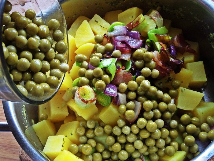Немного горошка и порея сверху.