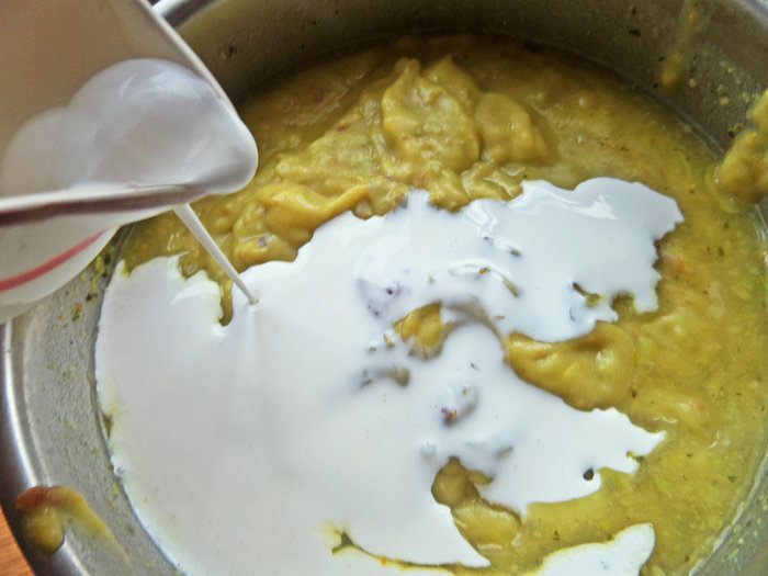 Теперь сливки любой жирности, какие предпочитаете. Если хочется горячего супа, снова нагреваем кастрюлю.