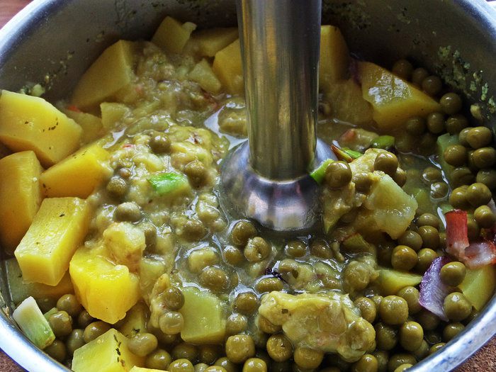 Взбиваем, подливая отвар (у меня весь понадобился) или бульон.