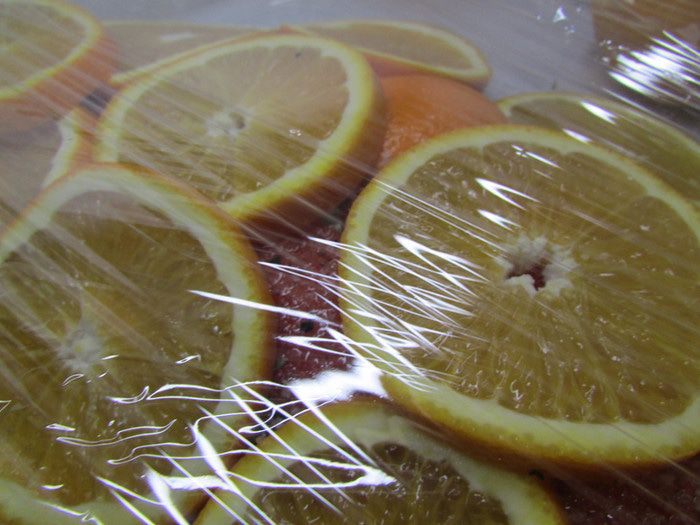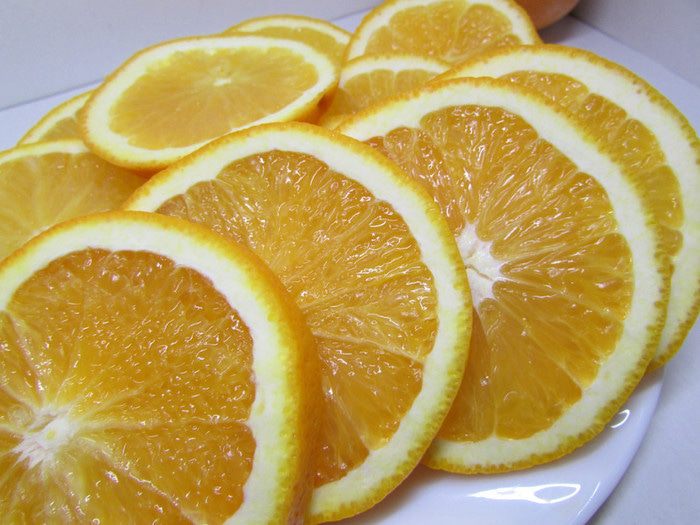 Апельсины хорошо помойте под горячей водой. Обсушите бумажным полотенцем и нарежьте тонкими кольцами.