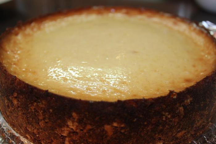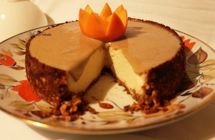 После (у меня через 1,5 часа) вынимаем чизкейк из духовки и оставляем остывать при комнатной температуре.