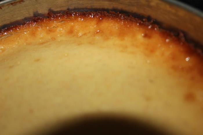 Важный момент!! Сразу, как достанете пирог из духовки, нужно ножом с тонким лезвием провести по диаметру формы, неглубоко где-то на 0,5 см. Это делаем потому, что чизкейк при остывании будет как бы сжиматься и плотнеть, а по диаметру образуется корочка, которая не даст этого сделать, и пирог треснет по краям.