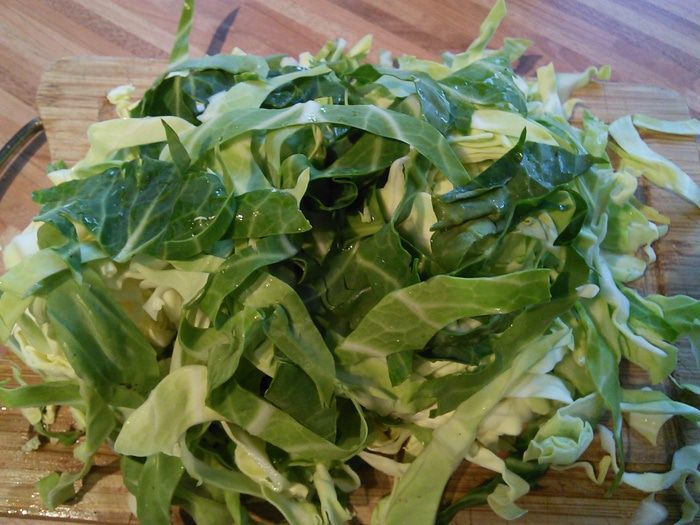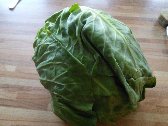 Тем временем моем капусту, в оригинале савойская, она же вирсинг, но мне попалась симпатичный кочанчик обычной капусты зелёного цвета.