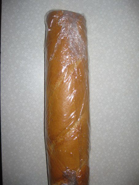 Заворачиваем багет в пленку и кладем в холодильник. Достаточно 10-15 минут. Масло застынет и нарезанные бутерброды-рулеты будут ровно и красиво нарезаться.