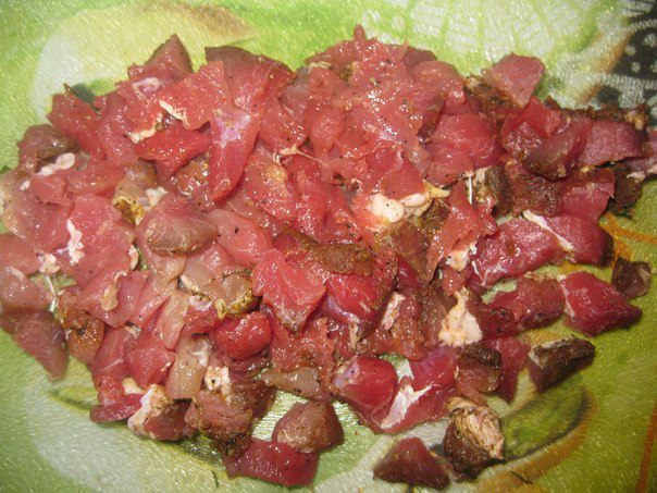 Нарезаем мясо кусочками.