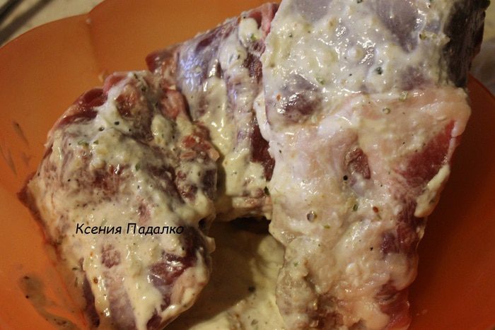 Ребра вымыть и обсушить бумажным полотенцем. Смешать все ингредиенты для маринада, и хорошо им обмазать ребрышки. Сложить в миску, накрыть пленкой и убрать в холодильник на 2-4 часа.