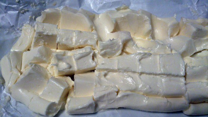 Размягченное сливочное масло порезать.