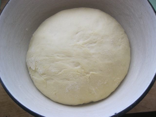 Переложить тесто в миску, накрыть полотенцем и оставить на 1 час, в теплом месте.