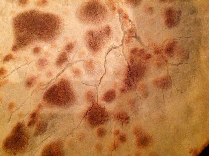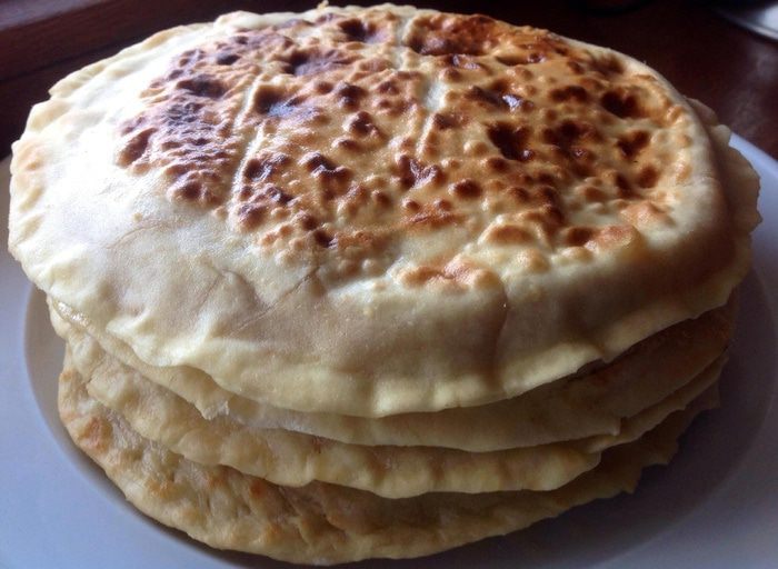 Раскатайте тесто где то 2 мм в толщину, разрежьте круг пополам и выложите на одну сторону фарш, присыпав это все грузинскими специями к шашлыку.