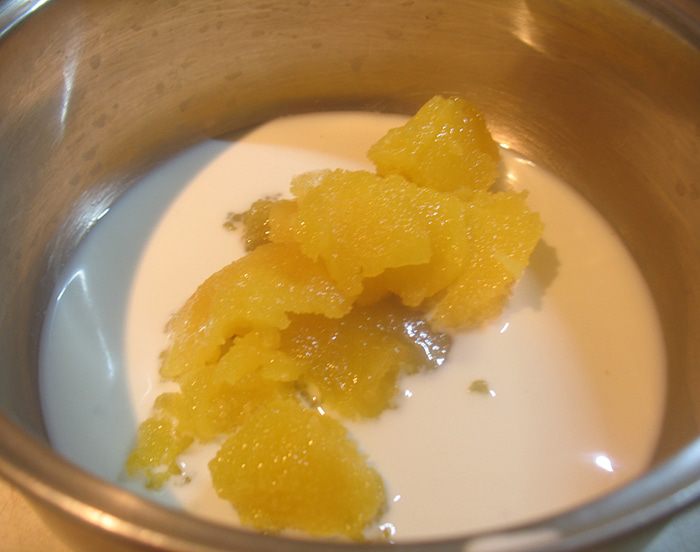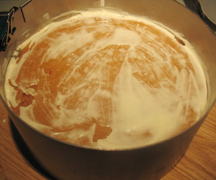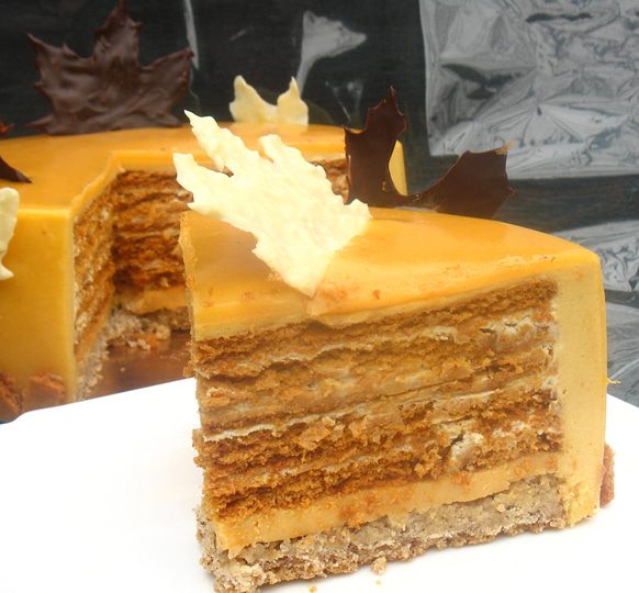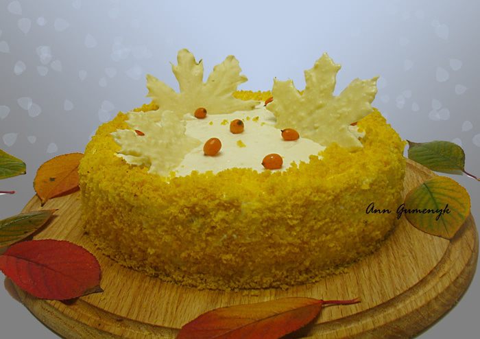 Глазурь. Желатин замочить. Сахар, мед, облепиховое пюре (85 г) — довести до кипения. Добавляем сгущенное молоко, растопленный шоколад, желатин - перемешиваем до растворения желатина. Слегка взбиваем ручным миксером. Если случайно образовались пузырьки несколько раз стучим об стол, чтобы они ушли. Ставим на ночь в холодильник. Разогреваем до 40°С и выливаем на торт.