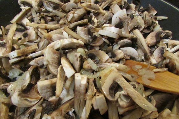 Лук и грибы обжарить на растительном масле.