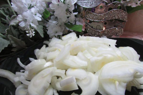 Каждый слой, кроме слоя грибов с луком, смазать майонезом. Желательно немного посолить и поперчить каждый слой.