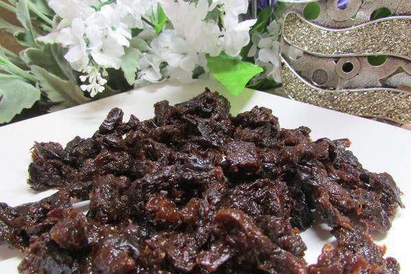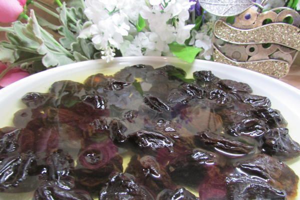 Чернослив залить кипятком на несколько минут. Откинуть на сито, чтобы убрать излишки воды.