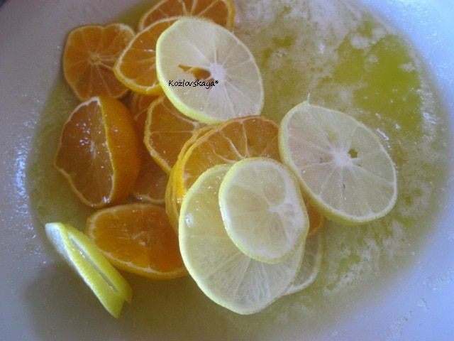 Равномерно распределить цитрусы по форме.