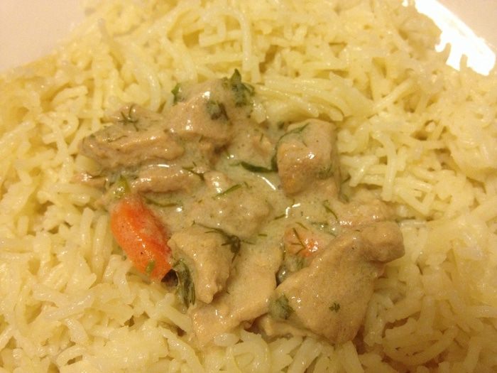 Телятину порезать маленькими кусочками, слегка протушить, ( я тушу в чугунной кастрюле) добавить мелко рубленый лук.