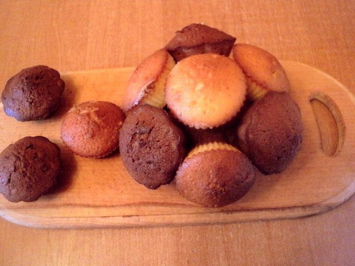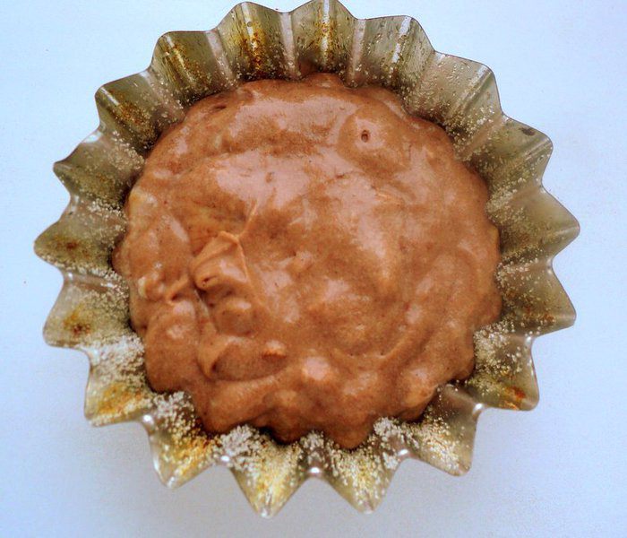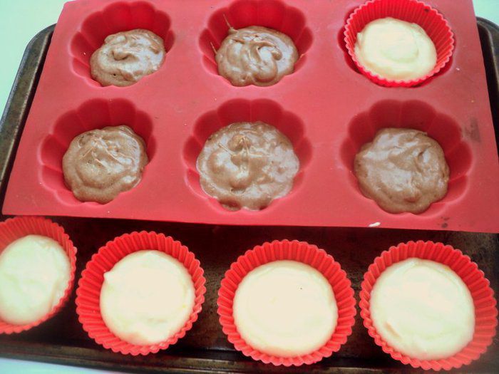 Наполнить белым и шоколадным тестом формочки для маффинов или капкейков по 5 шт.