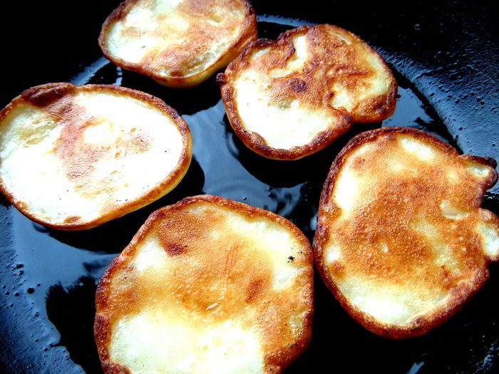 Обжариваем до нужной румяности оладушки с двух сторон.