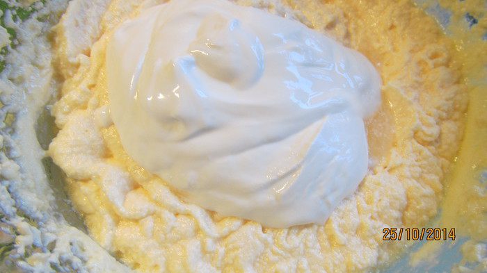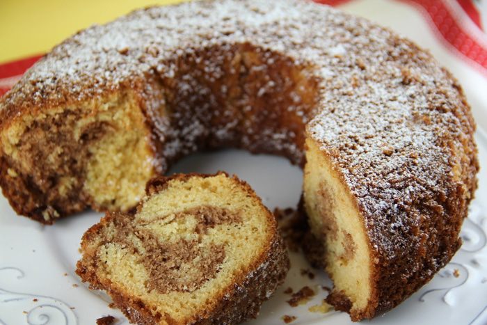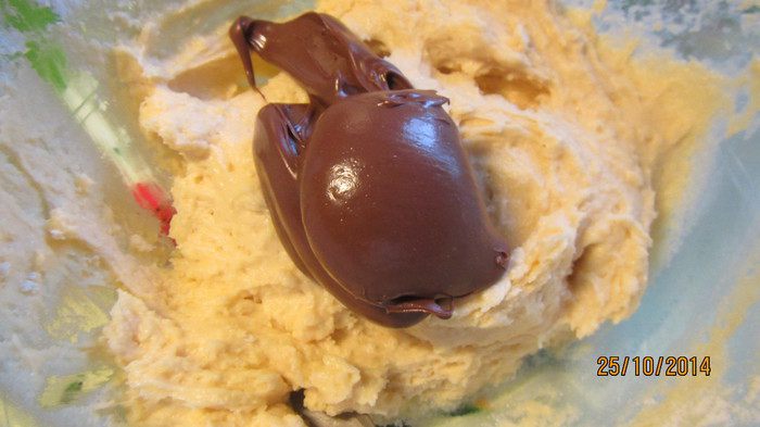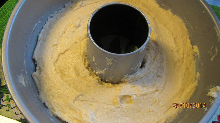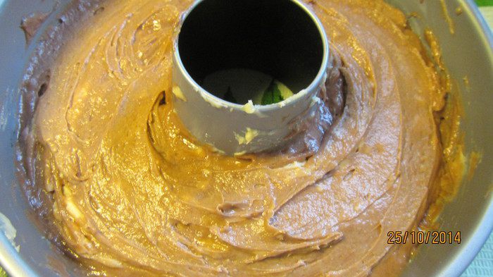 Выкладываем вторую половину теста в форму. Вилкой немного перемешиваем оба вида теста, делая рисунок типа "мраморного". Ставим в духовку 175 гр примерно на 1 час (после 45 минут нужно начинать проверять). Делаем тест зубочисткой, она должна выходить чистой.