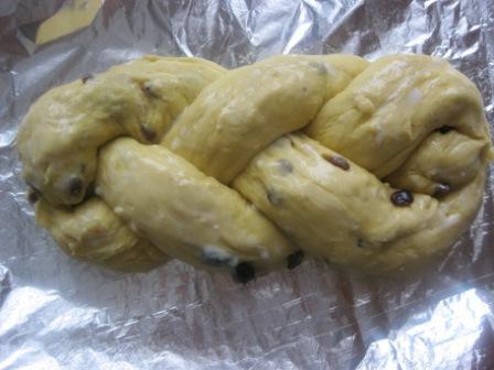 Переложить плетенку на противень, застеленный п.бумагой или фольгой.