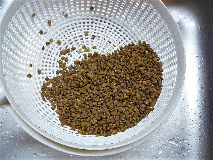 Готовую чечевицу высыпаем в дуршлаг и остужаем.