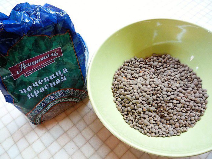 Чечевицу ТМ «Националь» промываем и отвариваем в подсоленной воде в течение 20-25 минут.