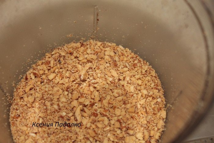 Обжаренный миндаль измельчить в процессоре, до средне-мелкой крошки.
