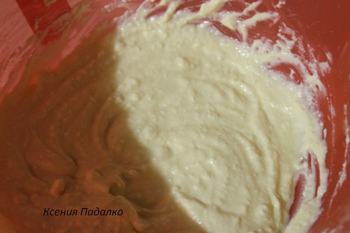 Займемся начинкой. Творог размять вилкой, добавить к нему яйцо, крахмал, сахар и ванильный сахар. Перемешиваем венчиком или миксером 5 минут.