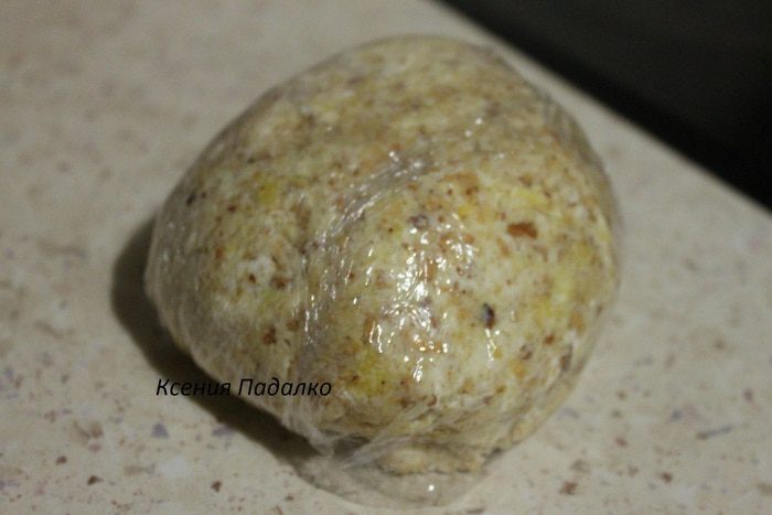 Тесто завернуть в пленку и убрать в холодильник на 30-40 минут.