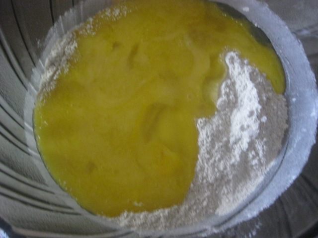 В отдельной миске смешать до однородности мед, яйца и оливковое масло.