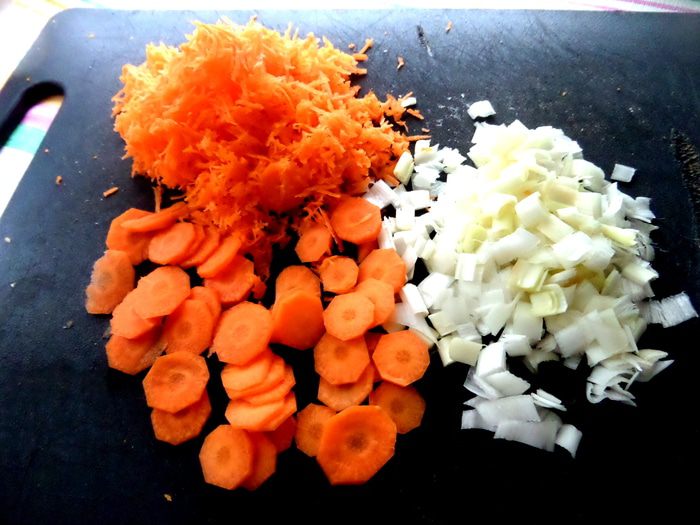 Морковь половину на тёрке,половину-кружочки для красоты)))