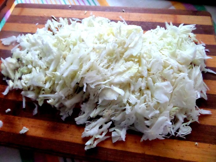 Капусту мелко шинкуем.