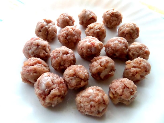 Фрикаделечки я люблю маленькие))) Ставим воду в кастрюле на огонь и кидаем в кипящую фрикадельки.