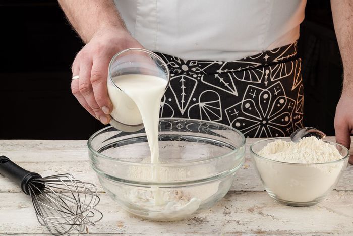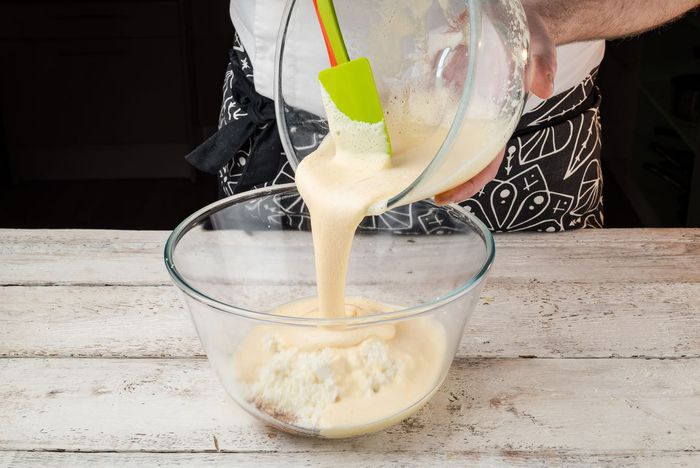 Влить опару.