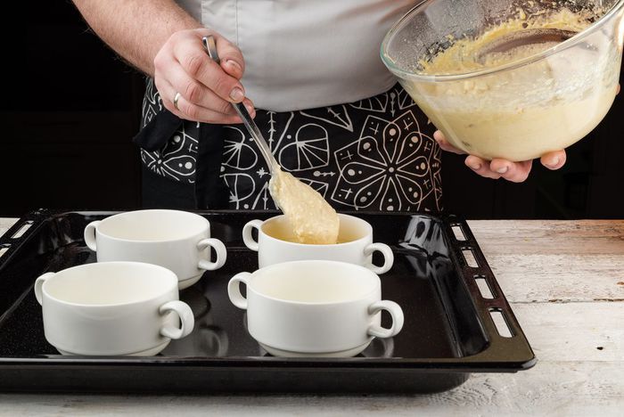 Выложить тесто в формы на 0,5 высоты и оставить подходить еще на 15 минут. Выпекать куличи при 180°С в течение 50 минут.
