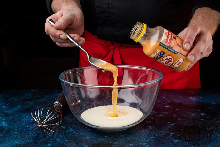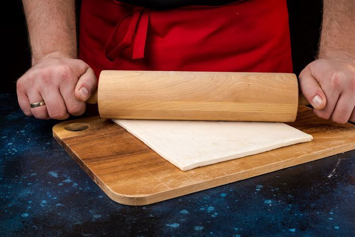 Выложите в форму слоеное тесто, наколите вилкой в нескольких местах. Бортики необходимо оставить высокими, чтобы начинка не вытекла. Разогрейте духовку до 180°С.