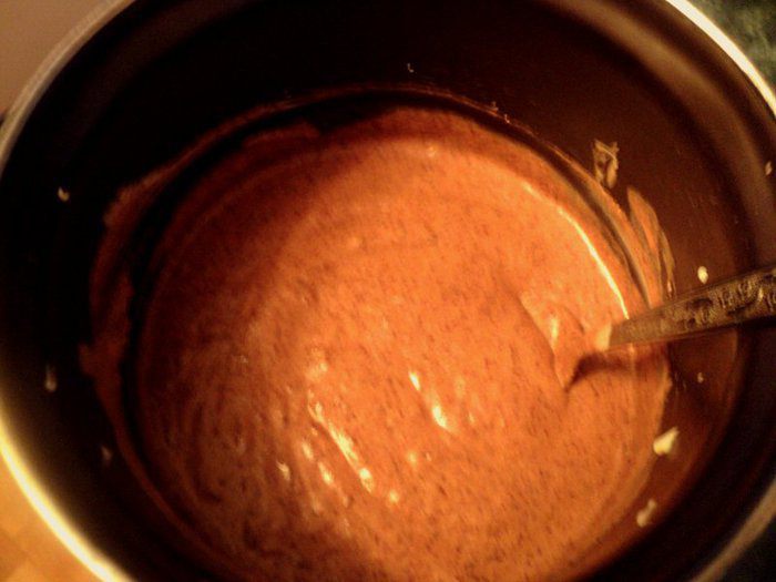 Для глазури растопить на плите, постоянно помешивая, сливочное масло, поломанный на кусочки шоколад и сгущенное молоко. Дать немного остыть.