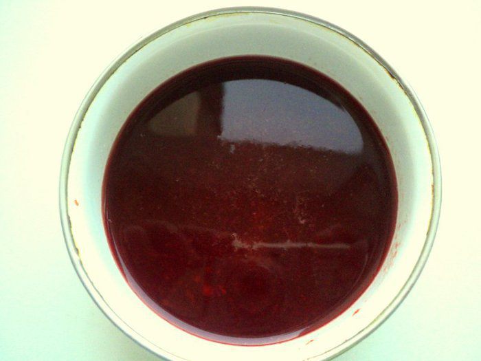 Измельчить перец вместе с малиновым пюре в блендере, затем смесь довести до кипения, протереть через сито, добавить желатин и размешать до его растворения. Перелить смесь в судок и поставить в холодильник для застывания.