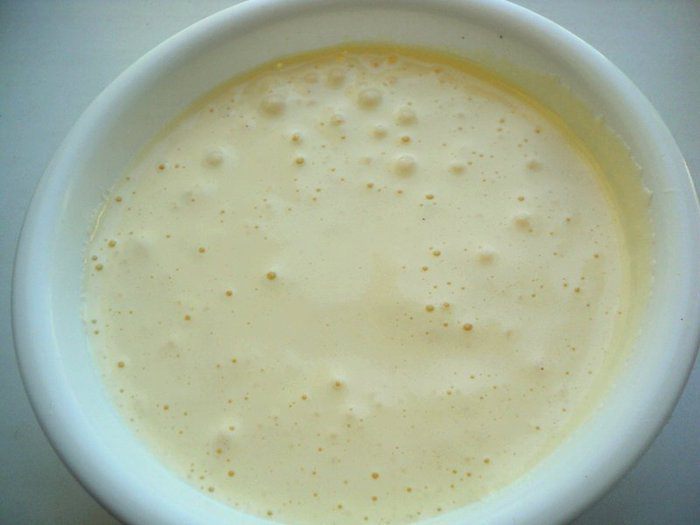 Яйца взбить с сахаром. Я взбивала своим любимым методом, поставив миску с яйцами над кастрюлей с горячей водой. Взбивать минимум 6 минут, яйца должны увеличится в объеме в 3-4 раза.