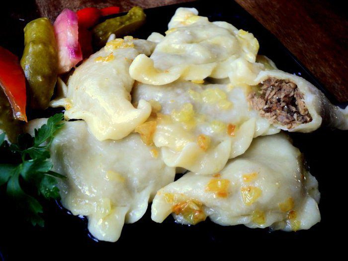 Гылуны – так называются вареники с мясом, которые готовят на Закарпатье. Тесто по этому рецепту готовится без яиц, очень эластичное, хорошо лепится. Мясо для начинки можно отварить предварительно, когда готовим бульон для первого блюда.