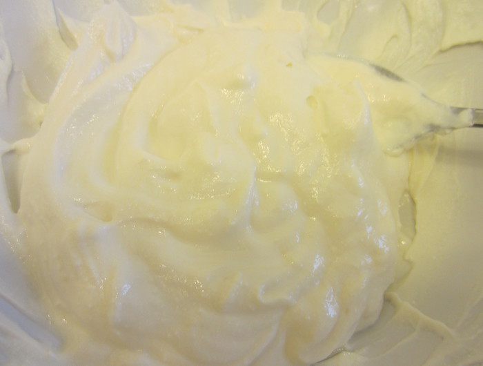 Смешиваем рикотту с сахарной пудрой, должен получиться вот такой крем.
