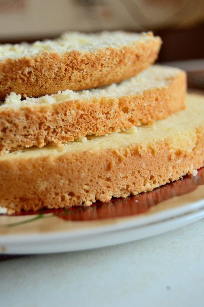 Остудить корж и разделить его на 3 части.
