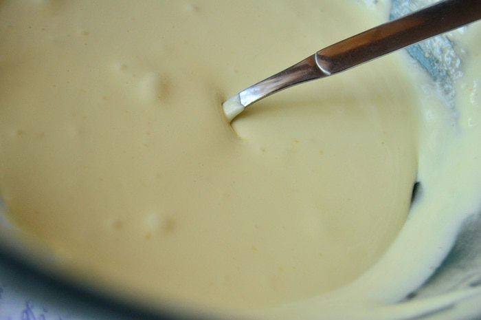 Для приготовления сиропа берем небольшую кастрюлю, выливаем в нее воду, высыпаем сахар и ставим на огонь. Когда вода закипит и сахар раствориться, отключаем. Даем остыть сиропу до 40 С, затем добавляем ванилин, сок, цедру лимона.