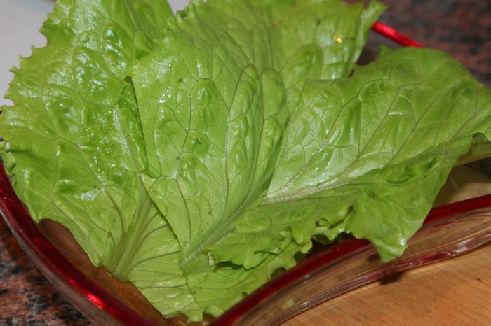 собираем наш салат. В порционный салатник выкладываем слоем листья салата