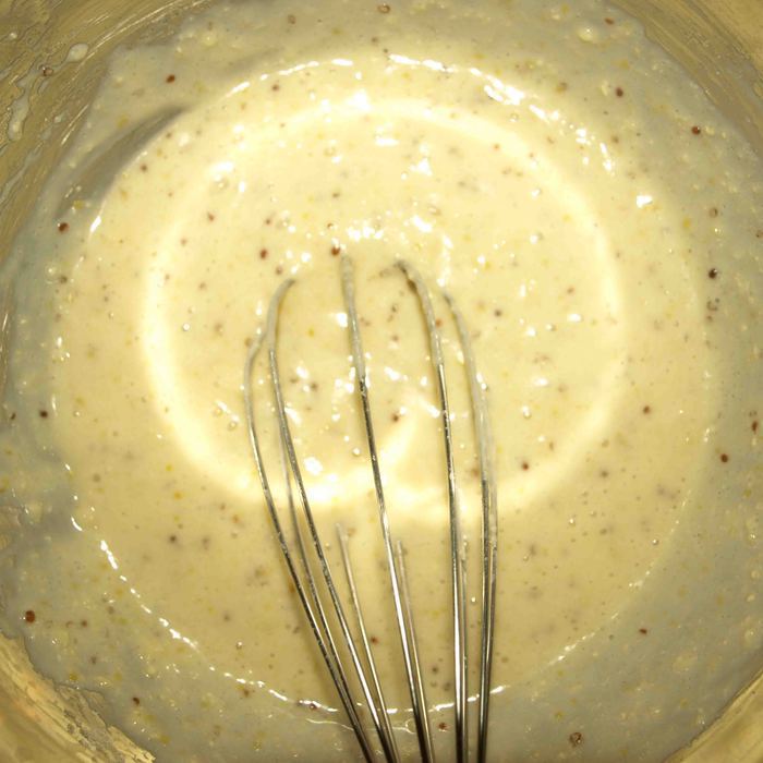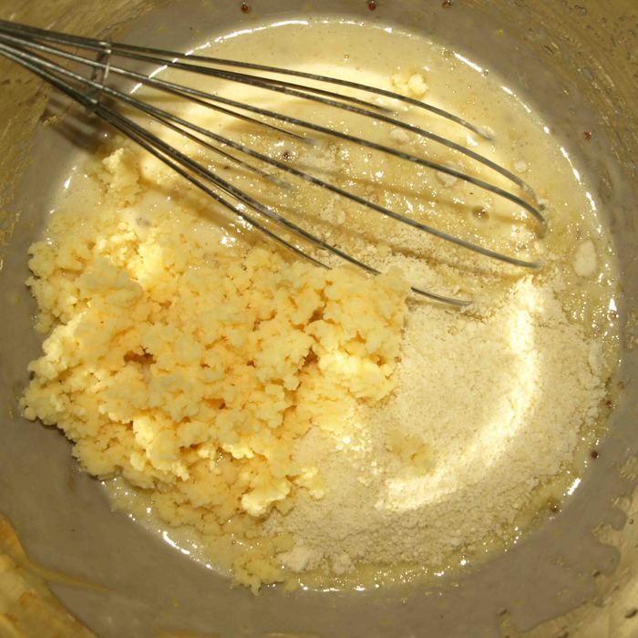 Измельченные орехи кешью и сыр добавить к яично-йогуртовой смеси. Хорошо перемешать.